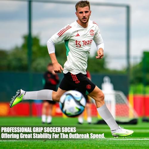 Grip Soccer Socks: Made of the 60% cotton 35% polyester and 5% spandex, soft and breathable, designed with large-area non skid silicone pads on the bottom and heel, provided with good stability, can prevent injury and improve speed, allow you to perform well during sports
