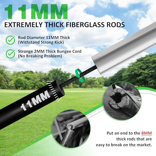 STURDY FIBERGLASS FRAME: This Soccer Goal features a Solid Fiberglass Frame that includes an elastic cord to hold the poles together, ensuring that the goal remains stable and upright even during the most intense play.