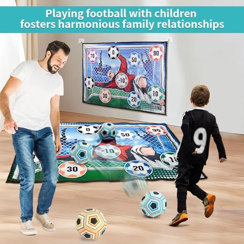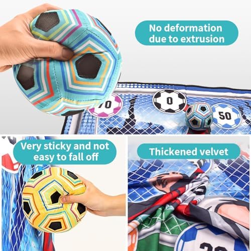 【Durability and Safety】 The gaming mat is made from durable materials to withstand aggressive play, ensuring long-lasting performance. It keeps kids of all ages safe, making it a great choice for hours of soccer enjoyment. The set includes 2 specially designed sticky soccer that stick to the mat on impact, replicating the feel of real soccers without having to worry about them rolling around or getting lost. Kids can enjoy safe, interactive play indoors or outdoors.