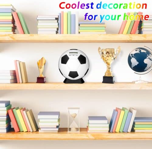 ⚽Perfect for soccer fans: This football-shaped piggy bank is a great decoration and an ideal way to save money for anyone who loves soccer. Its trophy-like design is eye-catching and unique.