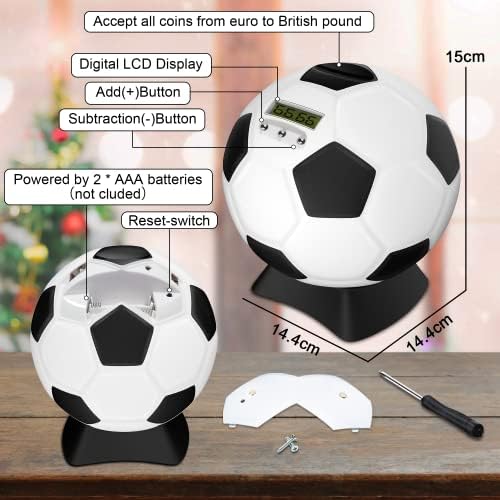 ⚽Comes fully equipped: The soccer bank includes 2 master keys and a Phillips head screwdriver to unlock the coin bank. The simple + – function allows you to easily report the withdrawn amount and record your savings accurately.