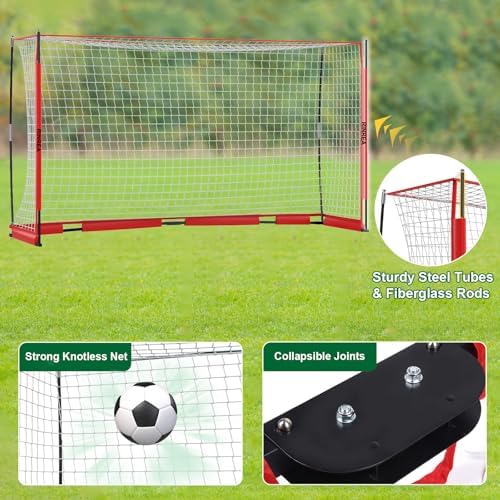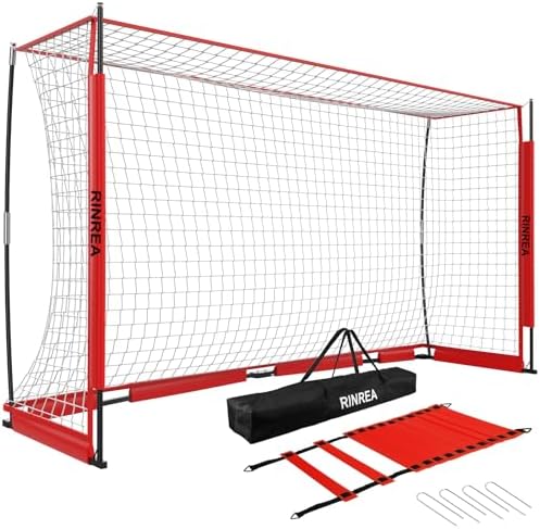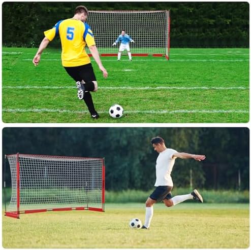 RINREA soccer goal net is suitable for all soccer lovers. This soccer training equipment is portable, and you can take it to anywhere thanks to its clever collapsible design. This soccer goal set is ideal for family backyard games, solo or team play, and improving your soccer skills.