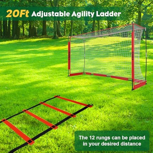 Soccer Training: This soccer goal net is perfect for team training, goalie training and Futsal / 7v7 Soccer Match. An extra agility ladder can improve your speed and increase the explosiveness of your feet.