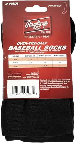 2 Pair of Rawlings Baseball/Softball Socks available in multiple sizes/colors