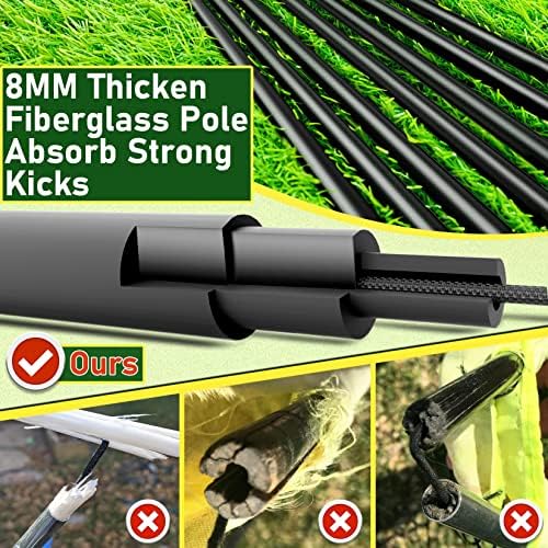 QUALITY ABOVE All ELSE: We specifically choose our material – durable Dacron material for the soccer net, twice thicker and stronger than all of the goal nets available in the market; upgraded fiber poles to 10 mm, making our goal as strong as steel metal to take the strongest kicks; 420D Oxford fabric for pole sleeves, able to handle all weather days and for heavy use