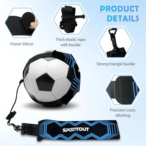 Superior design: The high quality elastic nylon materials, the strong buckle, the fine stitches, this soccer trainer is strong enough to hold the ball firmly, fits soccer ball sizes 3, 4, 5 and volleyball(ball not included).